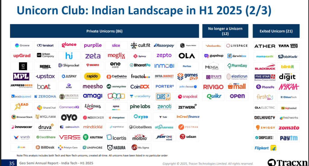 Several top Indian startups exited the unicorn club through IPOs in H1 2025, such as Nykaa, Zomato, and Paytm.